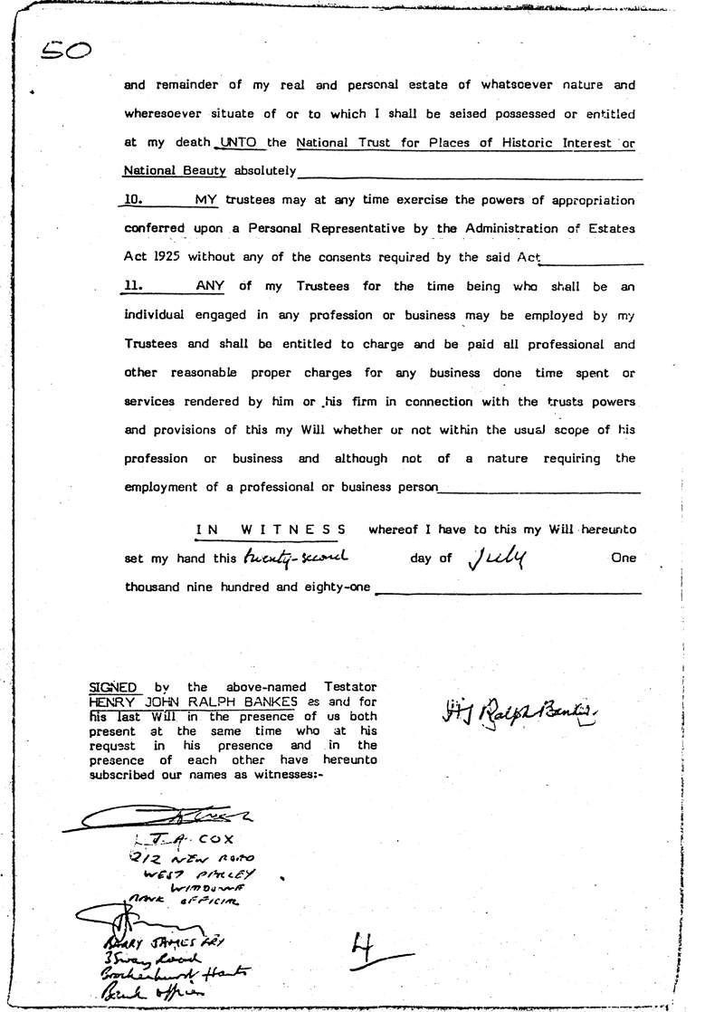 Ralph Bankes Will Cover Page