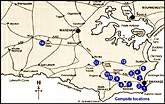Harman’s Cross crossroads into Haycraft's Lane for 1/2 mile. Camp site on